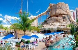 Um dos destinos disponíveis é para 5 dias e 4 noites para a cidade de Caldas Novas - GO, incluindo transporte, diária, café da manhã, almoço e jantar e acesso ao diRoma Parque aquático.