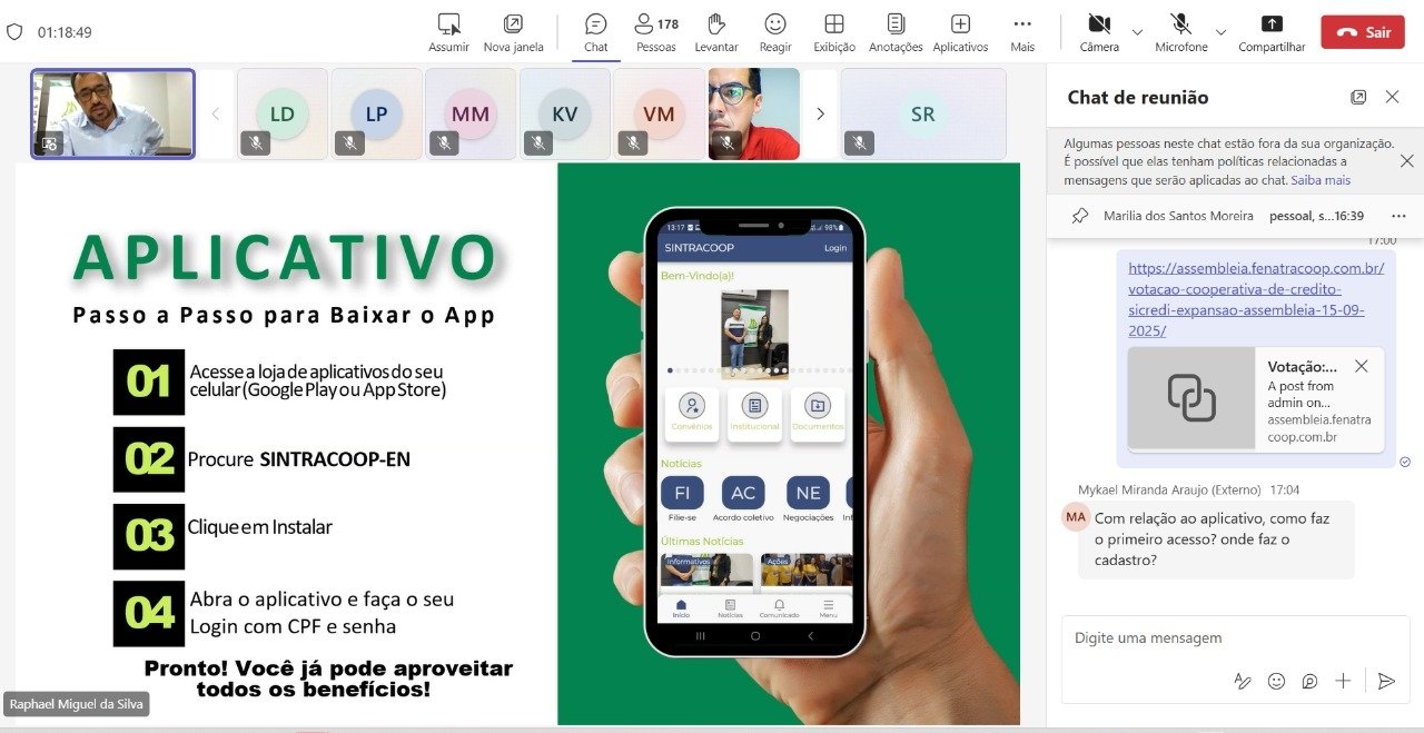 Durante a assembleia também foram divulgados o aplicativo da Fenatracoop e do Sintracoop-AL, além dos convênios disponíveis para a categoria, reforçando o compromisso das entidades em oferecer mais benefícios e facilitar o acesso às informações sindicais.
